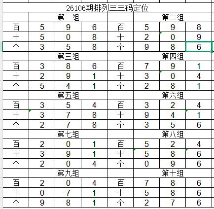 2026106期体彩排列三号码推荐: