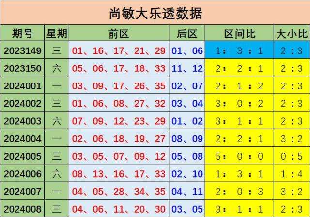 大乐透第2024008期出奖号统计:前区04 06 11 20 30,后区03、05,和值为71,跨度26,龙头04凤尾30,三区比为3:1:1,012路比为2:1:2,奇偶比为1:4,大小比为2:3,冷热比为3:2,1枚重号,0组连号。后区开出遗漏29期的小奇数03、遗漏19期的小奇数05。