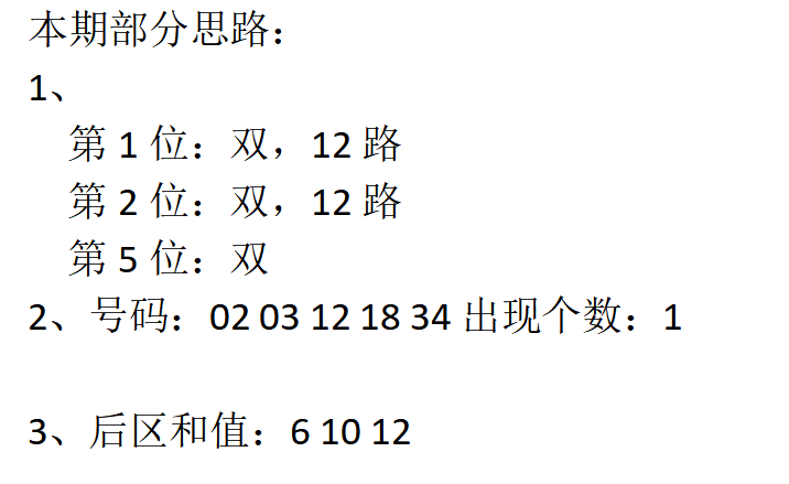 后区出号数据规律有:第1位范围在01-11之间,开奖号码为:03 05 09 02 11 01 05 06 03 02 05 03 04 08 04 05 06 02 03,奇偶规律为:奇奇奇偶奇奇奇偶奇偶奇奇偶偶偶奇偶偶奇,奇后可能出奇。我们再来看一下012路情况:0202212002201212020,12路趋势好,本期看好21路。结合以上后区第一位可以考虑21路、奇数等。后区第2位范围在05-12之间开奖号码为:06 07 12 05 12 09 07 08 07 09 06 05 08 12 05 12 07 10 10,奇偶规律为:偶奇偶奇偶奇奇偶奇奇偶奇偶偶奇偶奇偶偶,偶后可能出奇。我们再来看一下012路情况:0102001210022020111,02路趋势好,本期看好02路。结合以上后区第2位可以考虑20路、奇数等.