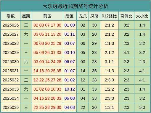 第2025036期大乐透前区分析