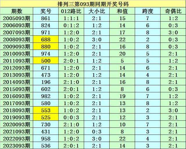 本期为排列三第2024093期开奖,开奖日期为:2024年4月12日,历史上排列三第093期已开出了19次奖号,历年同期开出号码分别为:861-824-971-688-880-974-500-671-473-196-602-982-580-553-525-730-431-958-536。