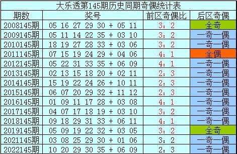 前区第四位:在历史第145期同期开奖中分布范围在17-33区段,平均值为25。3,奇偶比为6:8,目前奇数号码遗漏了1年,今年第145期注意奇数号码回补,关注号码21。