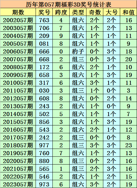 开奖回顾:福彩3D第2023057期奖号:973。