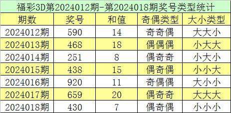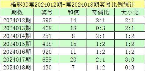 福彩3D第2024018期回顾:奖号为430,奖号奇偶比为1:2,大小比为0:3,和值为7,类型为组六。