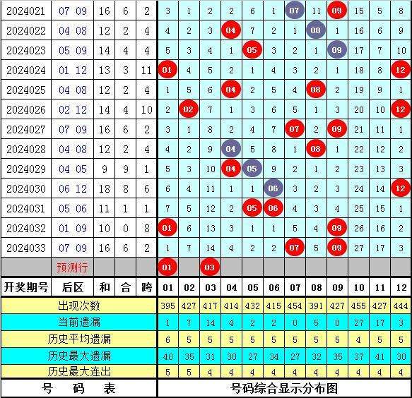 后区分析:后区上期开出号码07+09,和值为16,跨度为2。最近10区后一区(01-06)开出10个号码,断区2次,后二区(07-12)开出10个号码,断区2次,本期后一区注意号码:01、02、03、04、05;后二区注意号码:09。