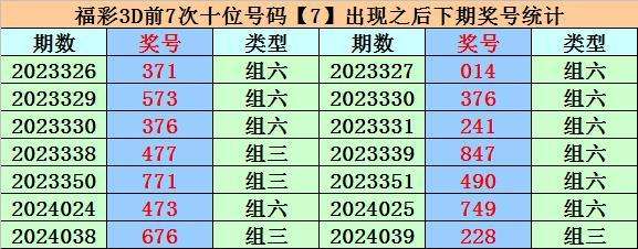 在十位开奖中,号码7前7次出现之后,下期奖号分别为:1、7、4、4、9、4、2,其中奖号奇偶比为3:4,大小比为2:5,012路比为1:5:1。