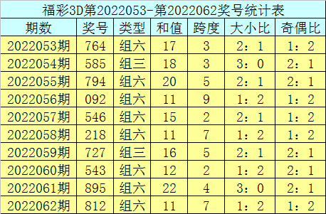 上期回顾:福利彩票3D第2022062期奖号为812。