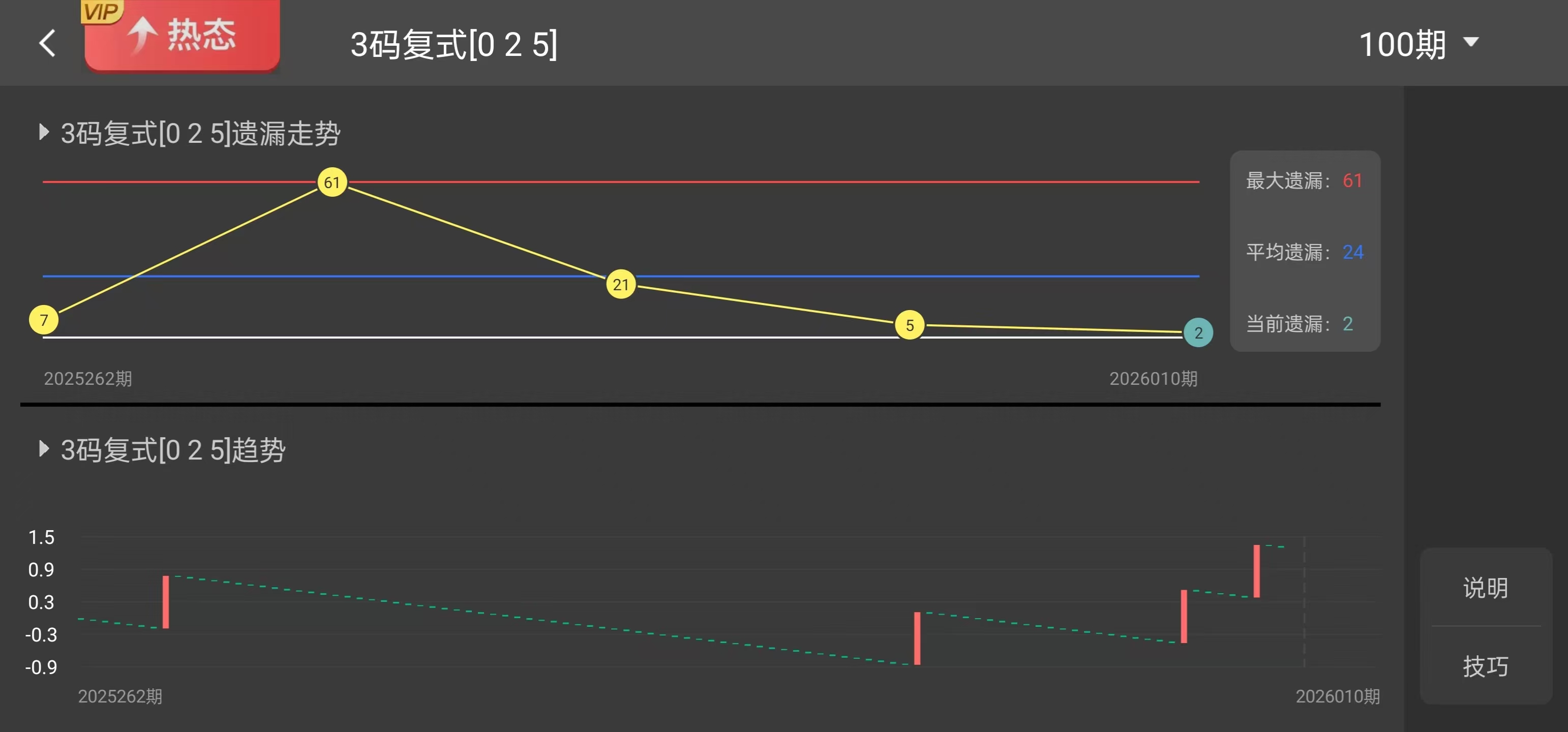 百位数字1、4、7近期出现频率较低,且呈现明显的“冷态”特征。在最近50期开奖中,百位“1”仅出现4次,且最近一次出现为2025年11月11日,已连续遗漏超过50期;“4”在最近60期中仅出现5次,最近一次为2025年12月31日,之后持续走冷;“7”在近期表现也较为疲弱,最近30期仅出现3次,且多呈现间隔性出现,近期未见连续开出趋势。结合百位数字的走势图分析,目前百位更倾向于中小号区域(0、2、3、5、6、8、9)活跃,而1、4、7在历史同期也未见明显回补迹象。因此,从遗漏值、走势分布及近期活跃度综合判断,建议本期杀百位1、4、7。