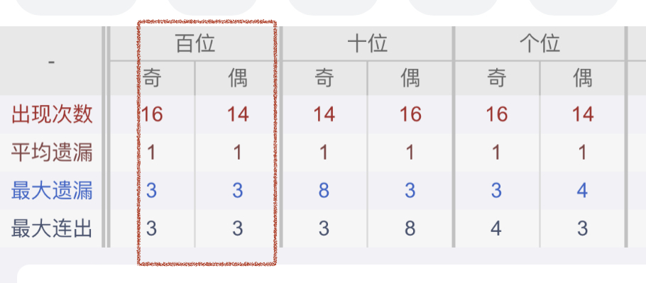 从近30期数据我们可以看出百位067是热码,这个冷热码数据我们结合之后的分析再利用它