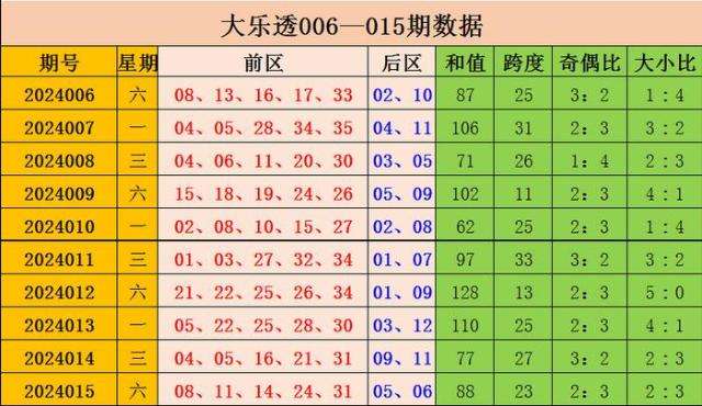 大乐透上期奖号为:前区08、11、14、24、31,后区05、06;龙头08,凤尾31,和值88,跨度23,奇偶比为2:3,大小比为2:3。