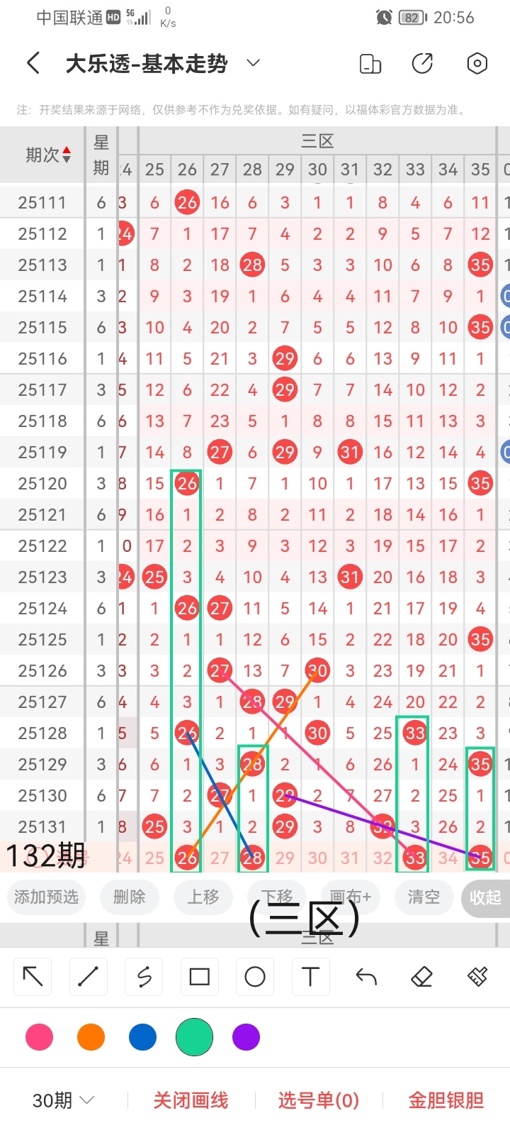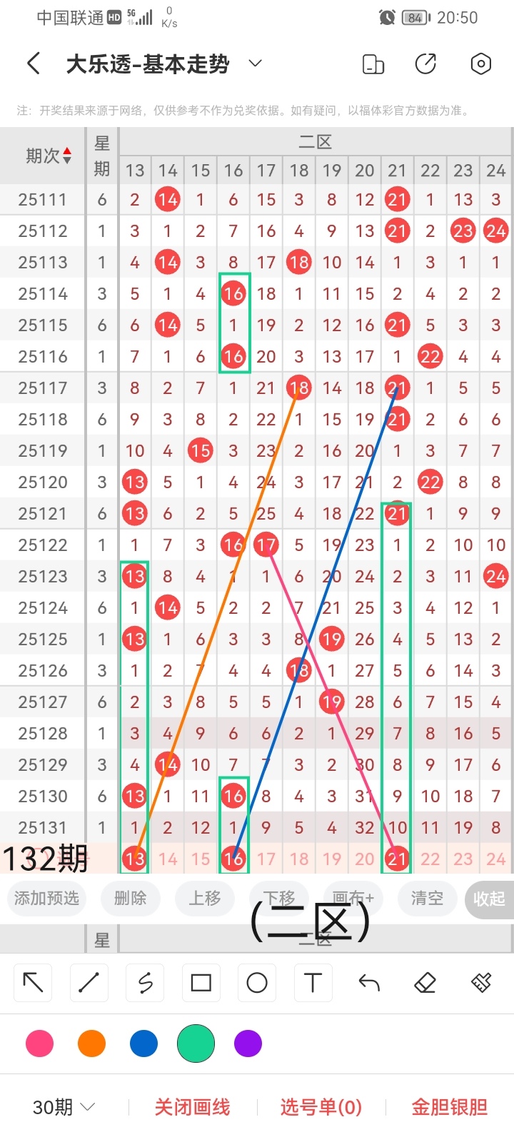 通过以上对上期的简单回顾,下面进入大乐透第2025132期(下面简称本期)的选号分析: