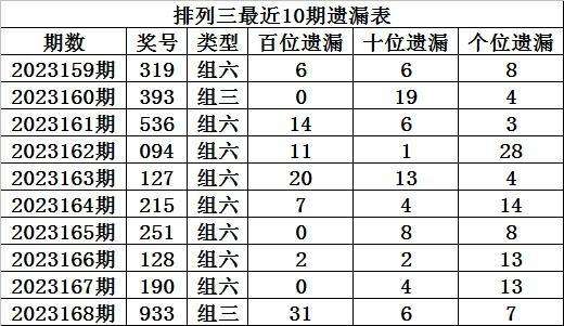 上期回顾:排列三第2023168期奖号:933,组三,直选遗漏总值为44期。