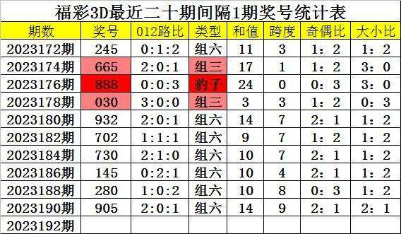 192期四叔福彩3D预测奖号:跨度参考