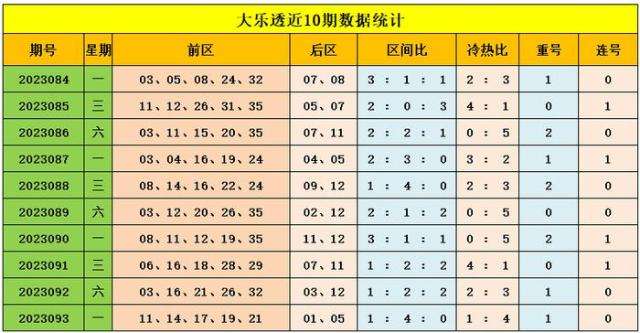 上期回顾:大乐透第2023093期奖号为:前区11、14、17、19、21,后区01、05,前区奖号三区比为1:4:0,开出1枚重号21,开出0组连号。后区开出小小组合01、05