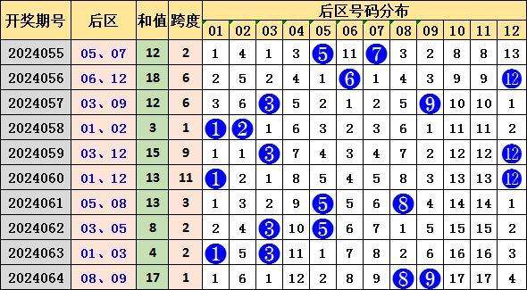 后区走势分析:上期开出号码08 09,近10期跨度2 6 6 1 9 11 3 2 2 1,推荐跨度4,本期推荐5码:02 04 06 07 12,精选推荐02 06