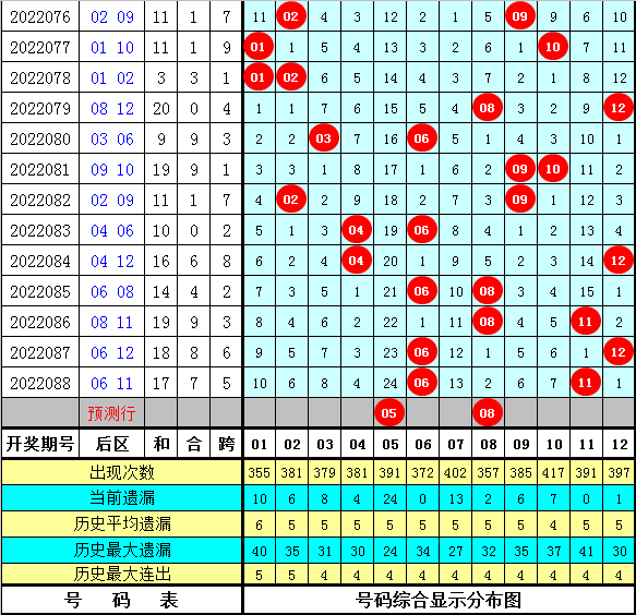 在历史同期开奖中,后区号码和值奇偶为10:5,其中奇号和值走势活跃,本期防奇号和值再次出现,关注和值13。