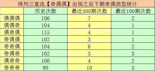 排列三第2024130期奖号为122,直选奇偶分布为:奇偶偶,该奇偶分布历史上共出现了830次,前100期出现16次。