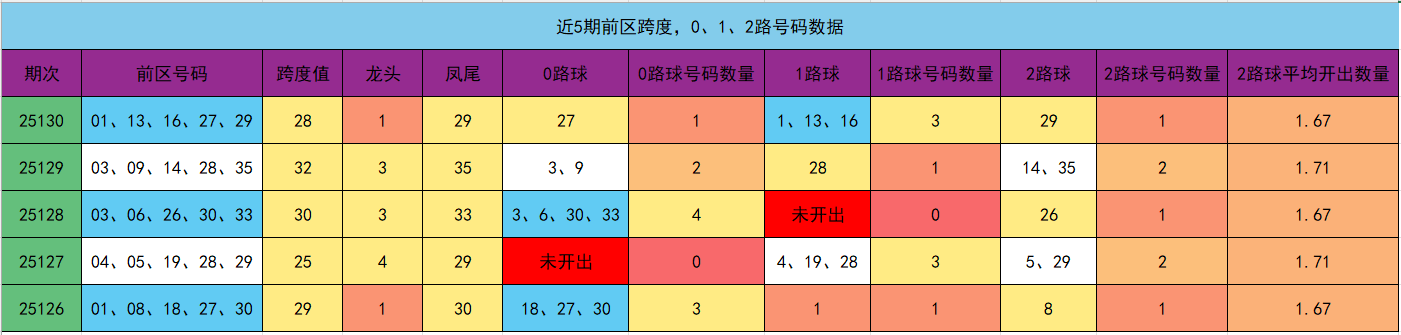 012路比: 上期0路开出1枚(27),1路开出3枚(01, 13、16),2路开出1枚( 29)。本期关注0路号码回补,推荐比例 2:2:1。