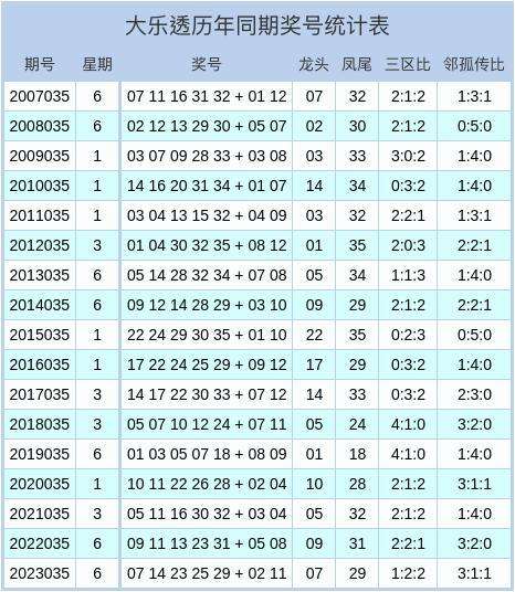 035期孟少奇大乐透预测奖号:三区比数据分析