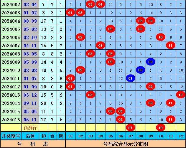 后区号码分析:在第017期历史同期开奖中奖,奖号04出现5次,奖号11 12出现4次,奖号01 02 03 07 10出现3次,奖号05 06 09出现2次,奖号08没有出现。本期后区五码参考01、04、05、07、10。