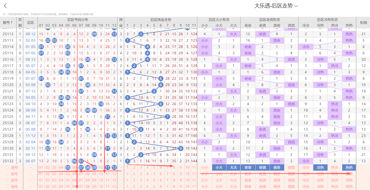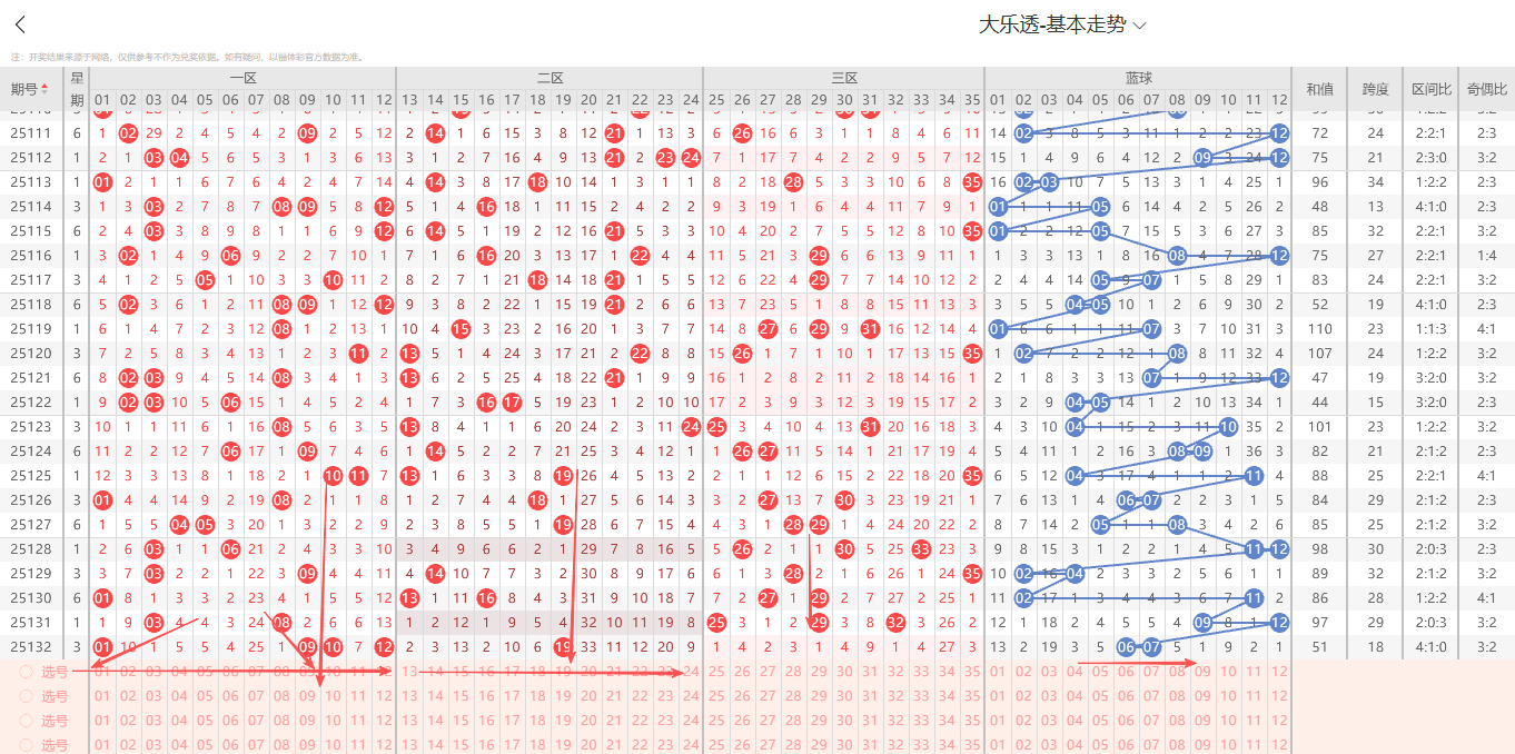 ③和值:结合对区间的比例数据来看本期和值参考71~99范围参考