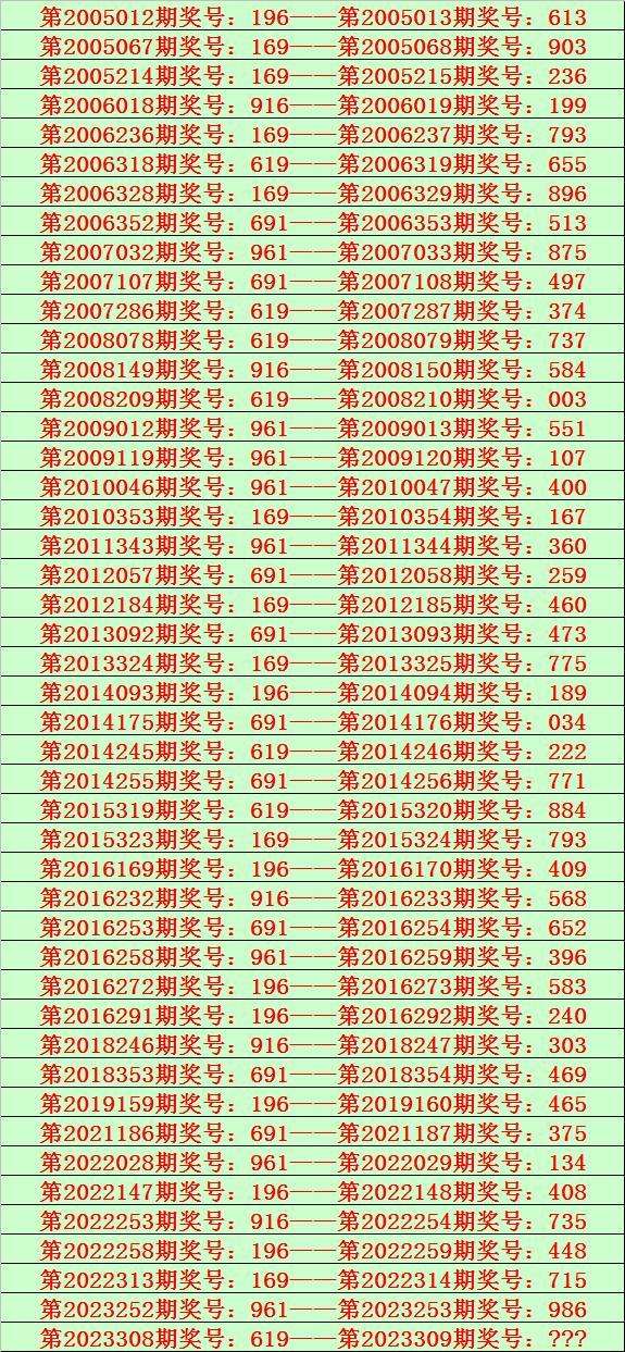 开奖回顾:体彩排列三第2023308期奖号为:619,类型:组六。