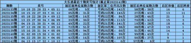 体彩大乐透第2023142期奖号为:04 13 15 17 32+10 12,前区号码大小比开出1:4,012路比开出1:2:2,奇偶比开出3:2,后区号码和值开出22,跨度开出2。