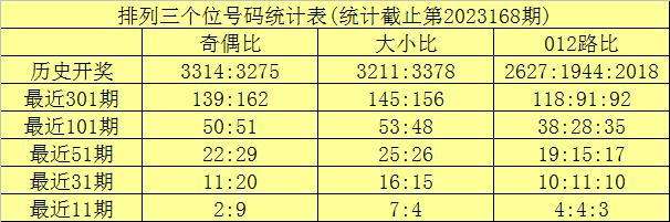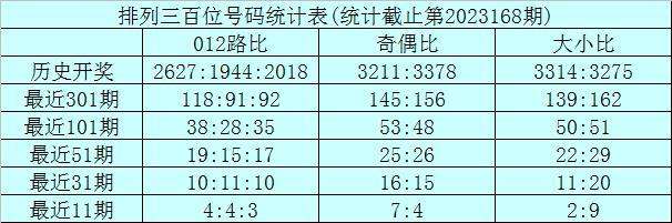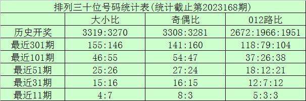 上期回顾:排列三第2023168期奖号为:933。奖号形态组三,大小比1:2,奇偶比3:0,012路3:0:0。