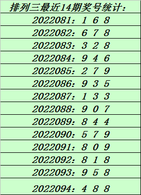 上期回顾:排列三第2022094期奖号:488。和值20,跨度4。