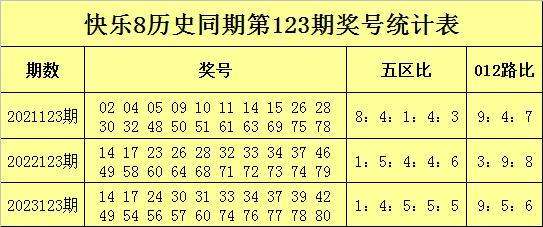 第17-20位号码分析:历史同期第123期出现范围在63-80区段,号码012路比为6:3:3,去年同期开出奖号:76+77+78+80,号码012路比为1:1:2。