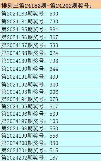 1。排列三最近十期分别开出号码:006-078-517-539-105-550-558-380-515-187,其中有9期奖号开出了上期的重复号码,本期预计第2024202期奖号:187中有重号,参考号码:1。