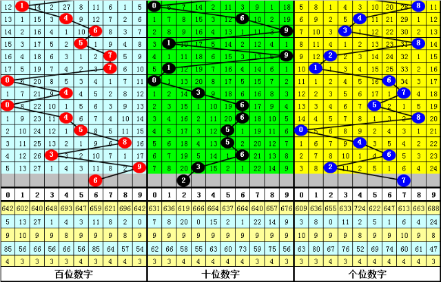 个位号码上期为2,质号,质号近期开出频次较低,上期出现质号之后,质号逐渐回补,本期防质号再次开出,参考号码7。
