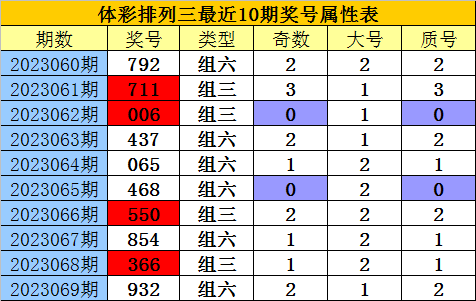 开奖回顾:排列三上期开奖号码为:932,大小比为1:2,奇偶比为2:1,质合比为2:1。