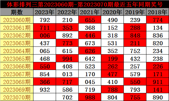 老郑体彩排列三第2023070期号码推荐:
