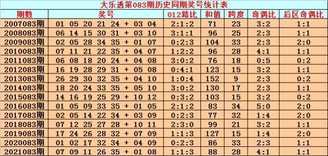综上所述,大乐透第2022083期前区012路比参考1:3:1。
