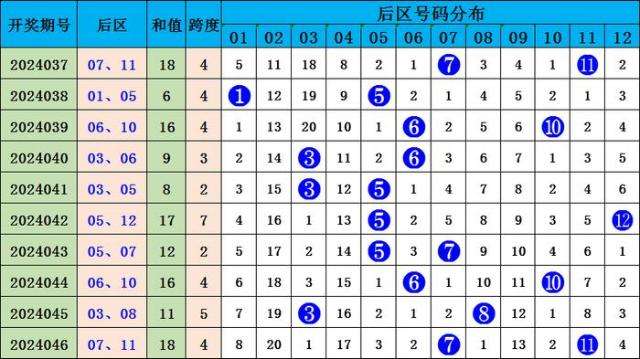 上期后区开出号码07、11,为大大,奇奇组合
