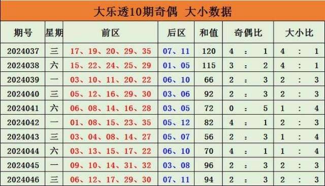 大小比分析:上期大小比2:3,近10期大小总比值21:29;近3期大小总比值为5:10,大小号开出率小号占优,综合分析,预计大号出号较多,推荐大小比3:2。
