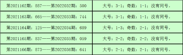 所以,3D第2022023期开出奖号:874,其大小比为2:1,奇偶比为1:2,012路比为0:2:1,与3D第2022037期奖号可能有同号。
