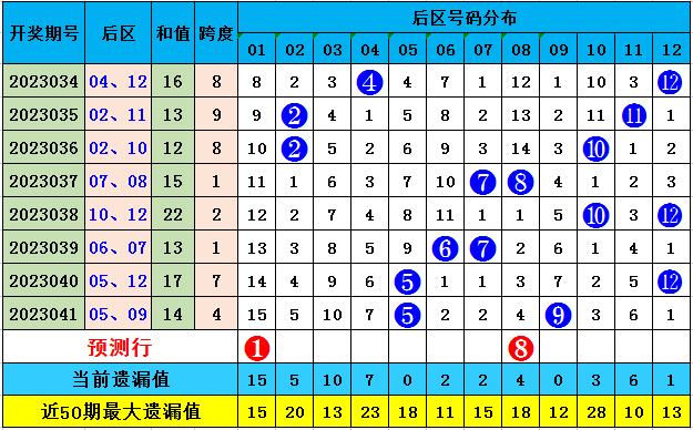 奇偶分析:最近8期后区奇数出现6次,偶数出10次,近期奇数号码走势较冷,偶数号码走势较热,本期关注奇偶组合。后区两码综合推荐:01、08。