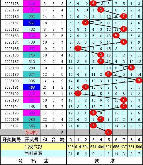 福彩3D第2023197期最大跨度开出3,近期最大跨度波动较大,本期预计最大跨度在3-7区段出现,最大跨度关注34567,精选跨度5。