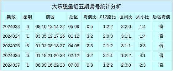 第2024028期大乐透奖号统计表