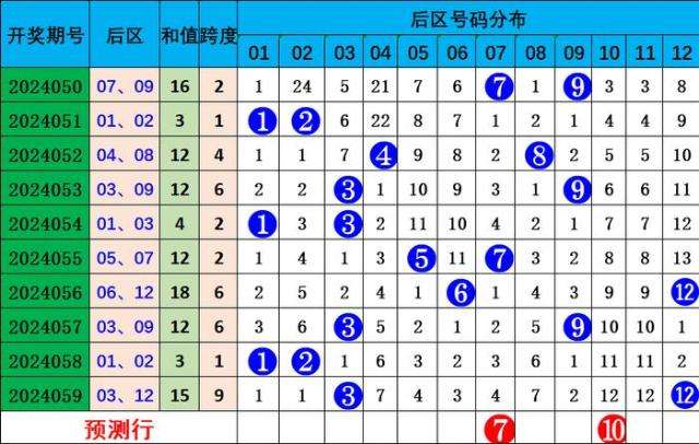 上期开出后区号码:01 02,热热组合。冷热分析:近十期,冷热比7:13,冷号出号较少,综合分析,本期预测热冷组合后区回补,关注号码:03 07 09 10 12。精准推荐:07 10。