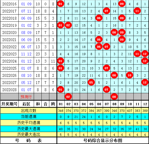 后区5码参考:02 06 07 08 12