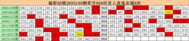 上期回顾:福彩3D第2023148期开出奖号959。