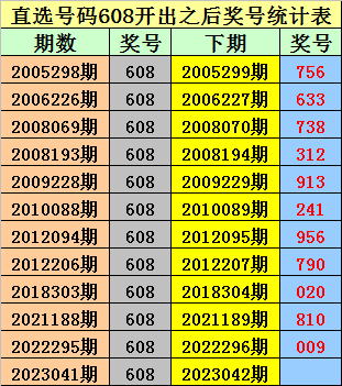 排列三直选608出现之后下期奖号分别为:756-633-738-312-913-241-956-790-020-810-009。