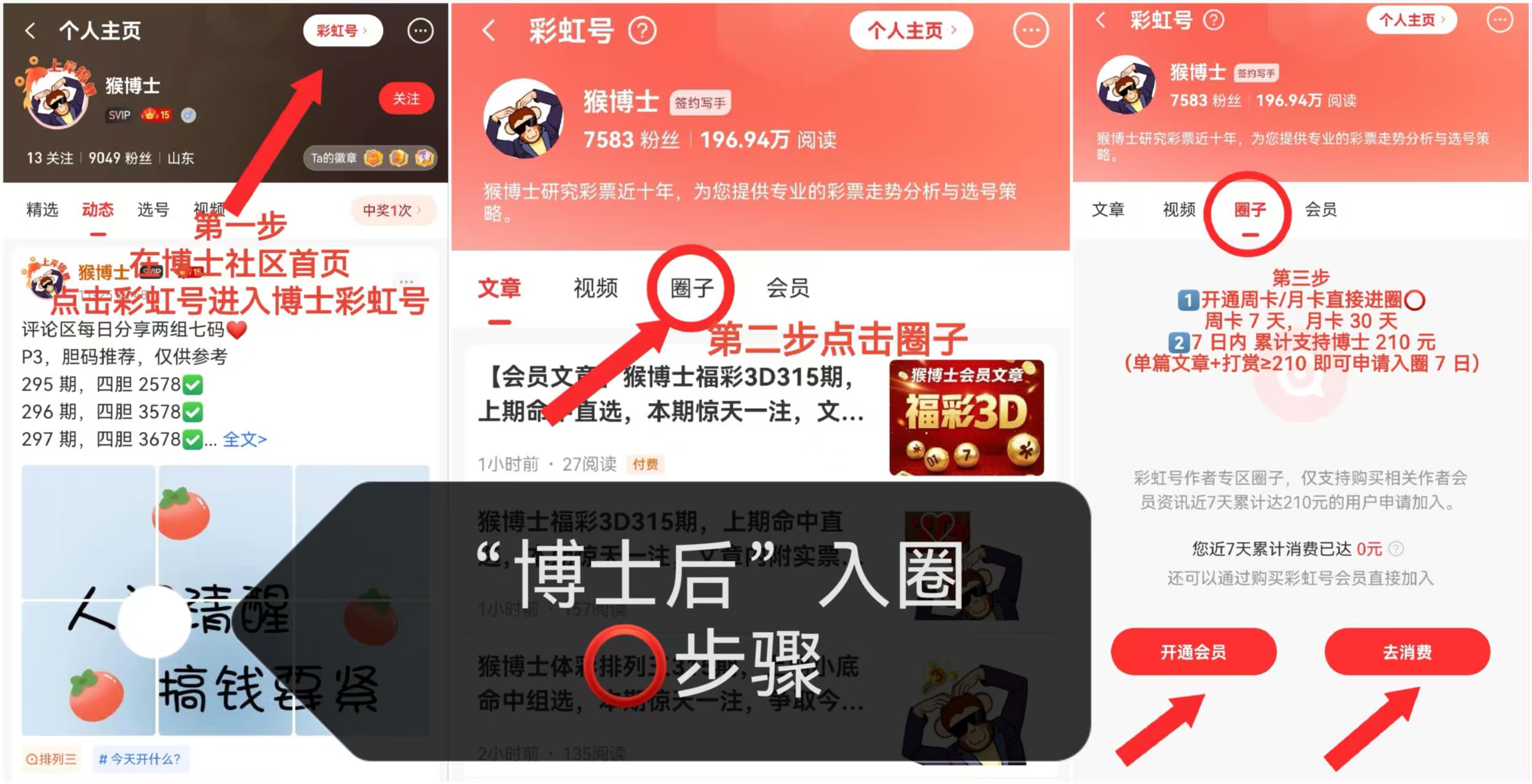 1️⃣今日起在 7 日内支持博士 210 以上(包含 210 元)可申请入圈 7 天(单篇文章+打赏≥210 元即可申请)