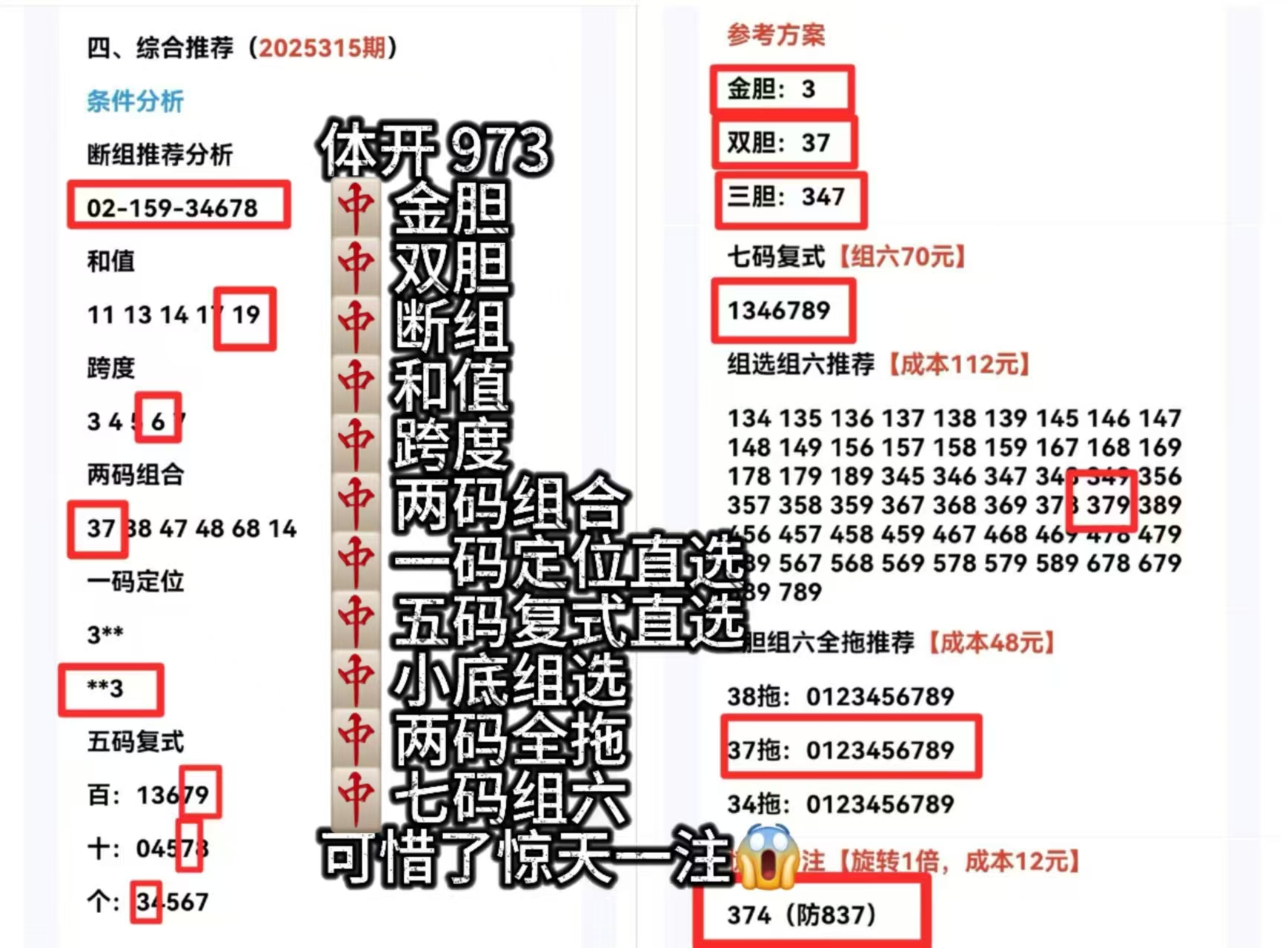 2025307期 命中大底直选,命中小底组选,命中五码、七码推荐,命中和值,命中两码组合