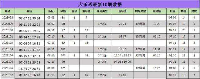 后区开出号码03、10,和值13,近10期和值都在7-20之间,预计下期和值出现在10-15。近10期,跨度在1-9之间,第1位波动范围1-9,第二位波动范围6-11。预计下期跨度3-7。后区推荐号码04、09