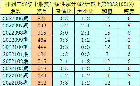 上期回顾:排列三第2022105期奖号:642。类型:组六,奇偶形态:偶偶偶,大小形态:大小小,和值:12,跨度:4。