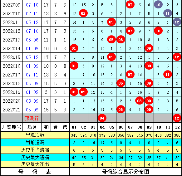后区5码参考:01 02 04 10 12